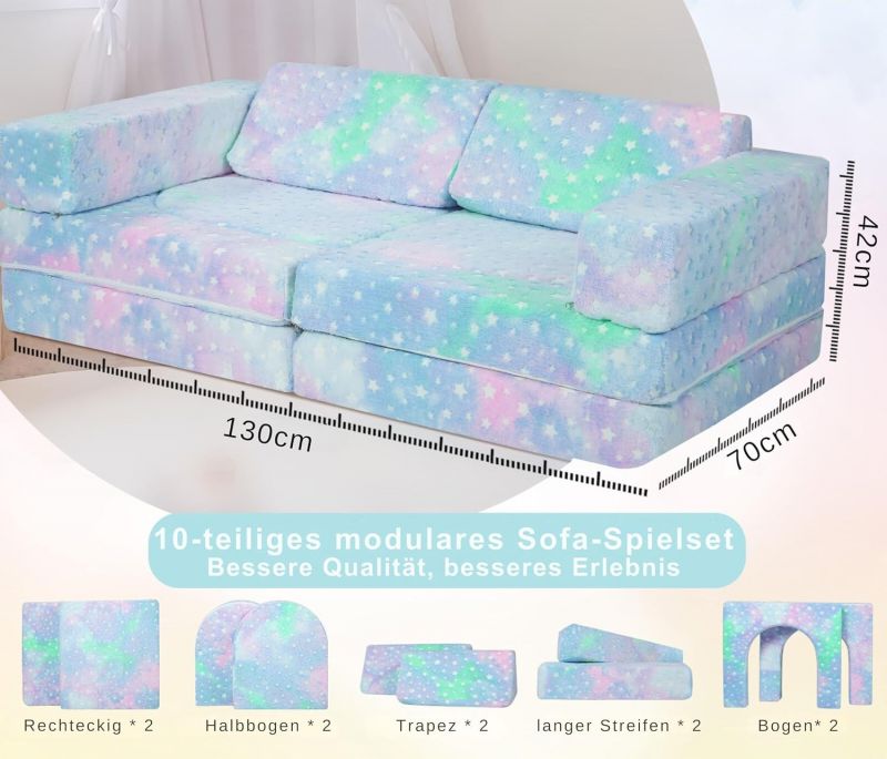 Komfortní a bezpečný – měkký povrch pro bezstarostné hraní: Pohovka je vyrobena z kvalitní pěnové hmoty, která nabízí měkký povrch tlumící nárazy. Bez ostrých hran nebo tvrdých dílů je bezpečný pro děti, které si rády hrají na měkkých površích. Perfektní pro nerušenou dobu hraní a odpočinku.